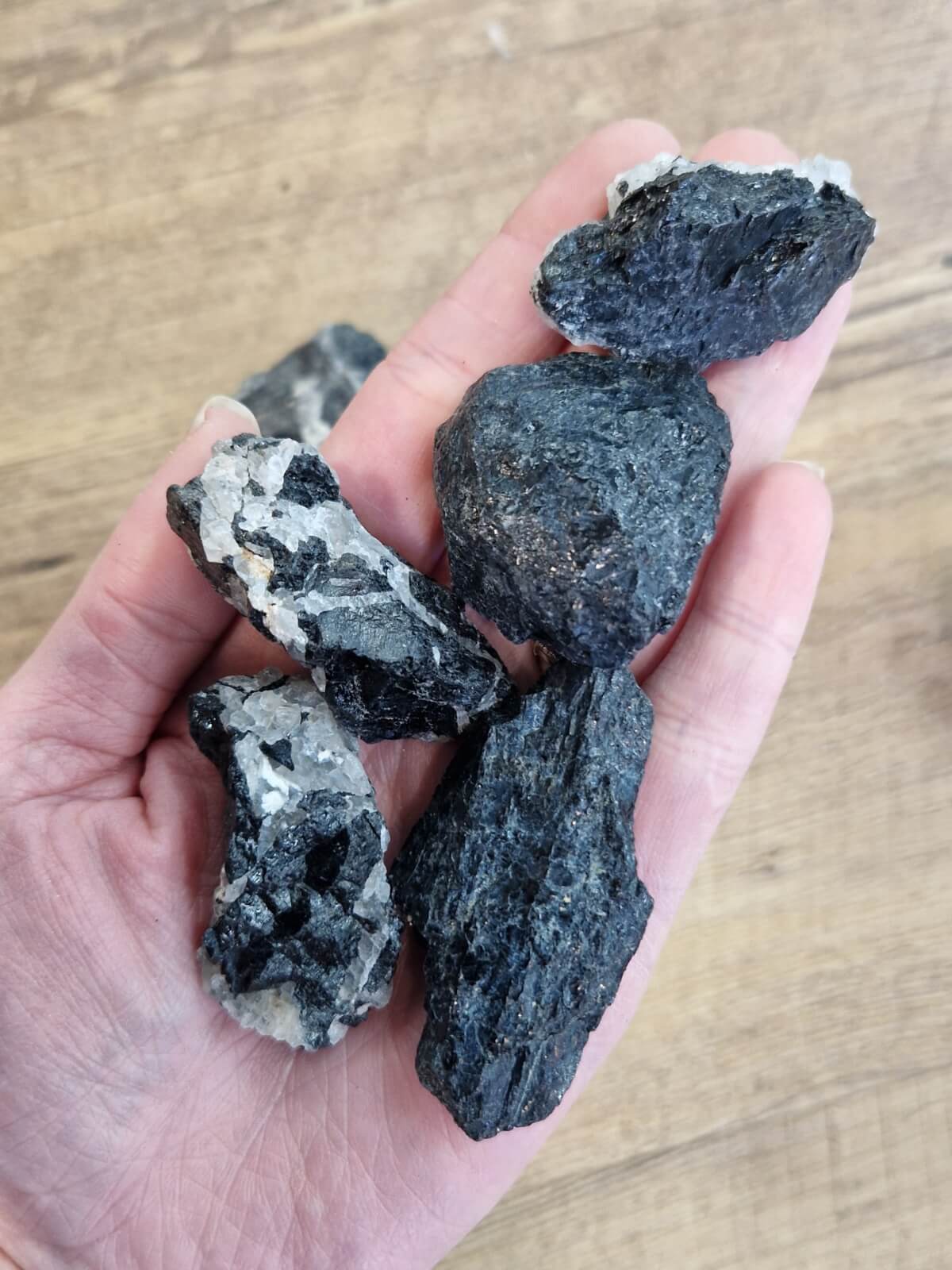 Črni turmalin je eden najmočnejših zaščitnih kristalov, ki ustvarja energijski ščit okoli tvojega telesa in prostora. Njegova globoka, črna barva v sebi nosi moč zemlje, stabilnost in mir, hkrati pa te osvobaja od negativnih energij in težkih čustev.