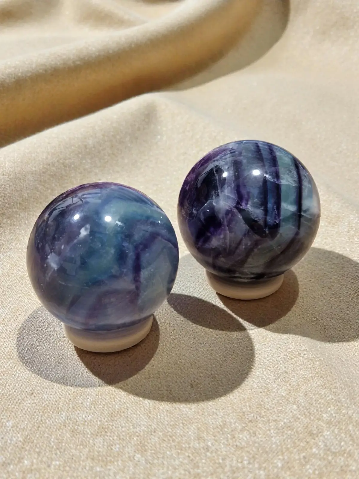 V sebi nosi barvni ples čudovitih barv. Fluorit je kristal jasnosti, mentalne osredotočenosti in zaščite, njegova kroglasta oblika pa še okrepi energijski pretok in harmonijo, saj se energija enakomerno širi v vse smeri.