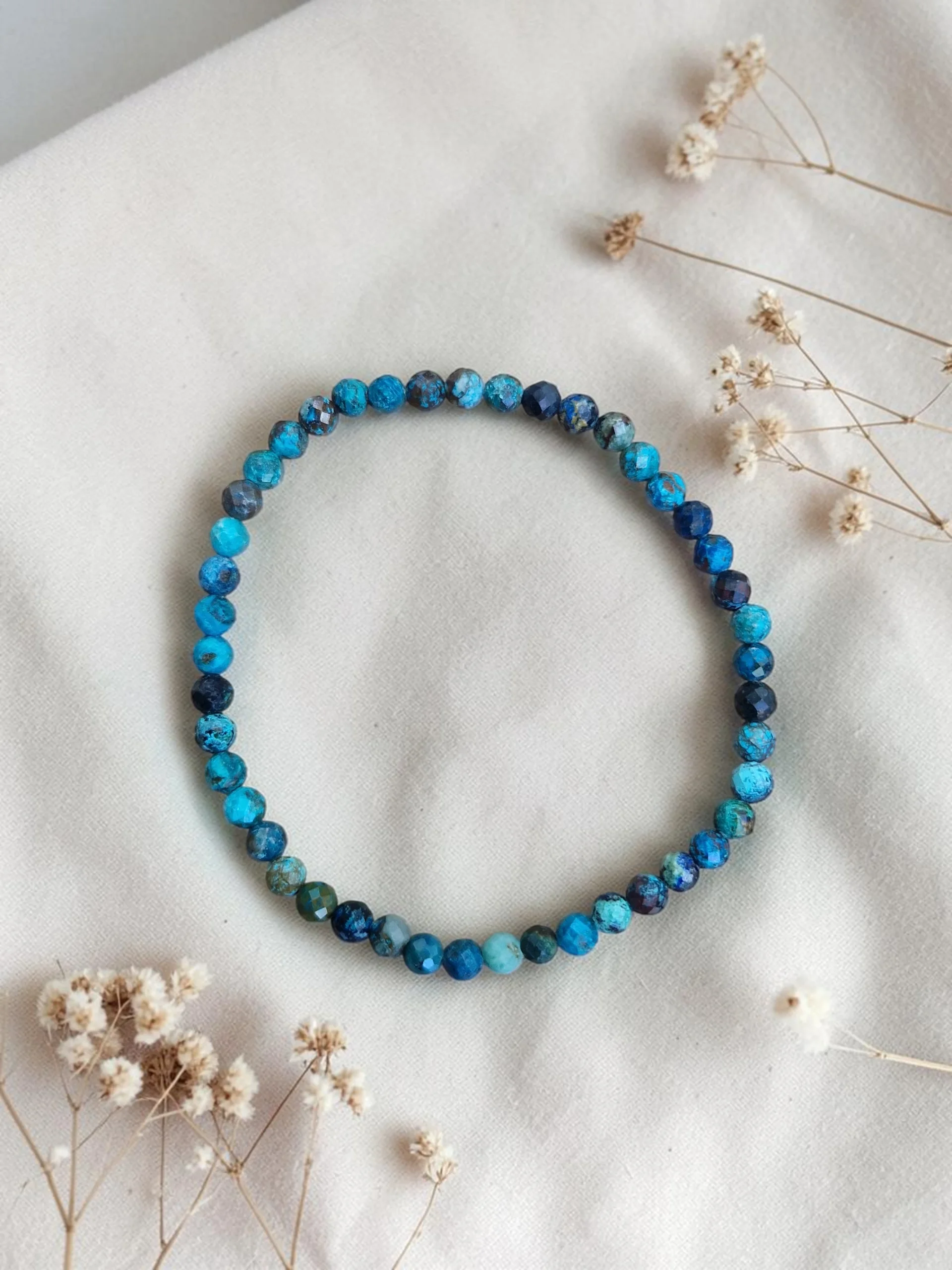 Ta čudovita zapestnica v sebi nosi vibracijo miru, resnice in notranjega ravnovesja. Njena energija ustvari prostor, kjer se stvari umirijo in postavijo na svoje mesto.