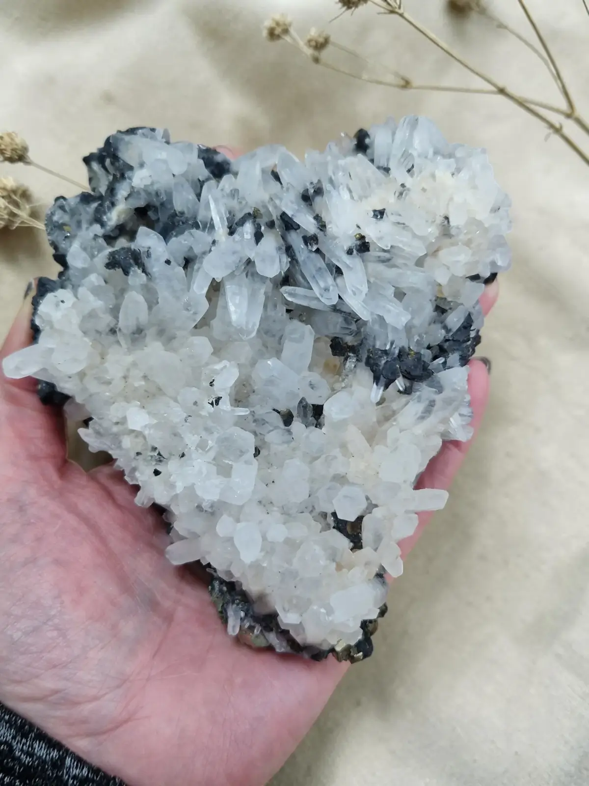 KAMENA STRELA je kot nežna mreža svetlobe, ki obda in prečisti vse okoli sebe. S svojimi kristalnimi iglicami prinaša jasnost misli, povečuje zavedanje in dviguje vibracijo prostora.