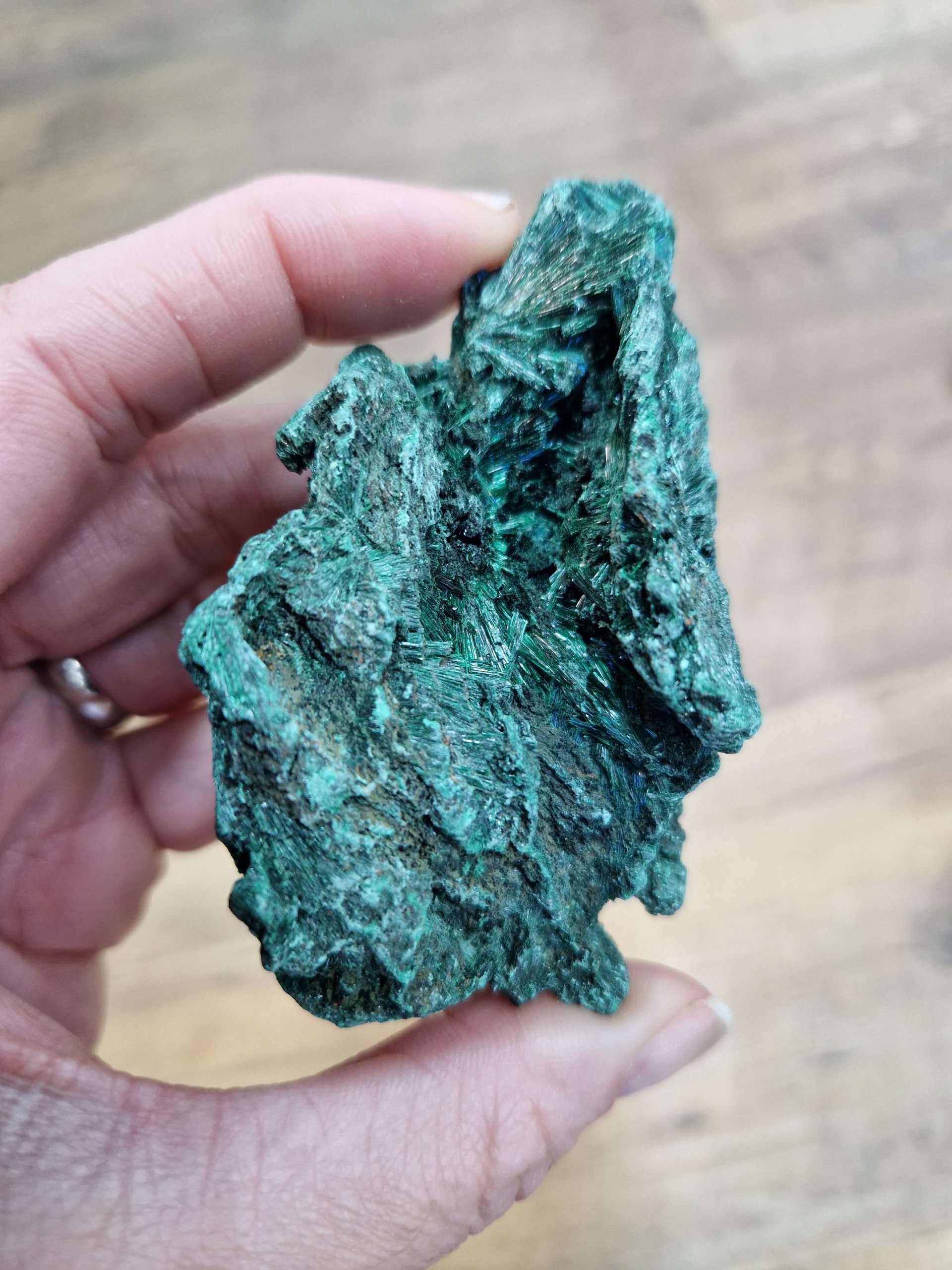 Malahit je eden najmočnejših kristalov srčne preobrazbe - kristal, ki te ne bo le nežno pobožal, temveč te bo odločno popeljal tja, kamor si že dolgo želiš iti. Njegova globoka zelena barva s kovinskimi leski prebuja pogum, jasnost in popolno energijsko očiščenje srca.