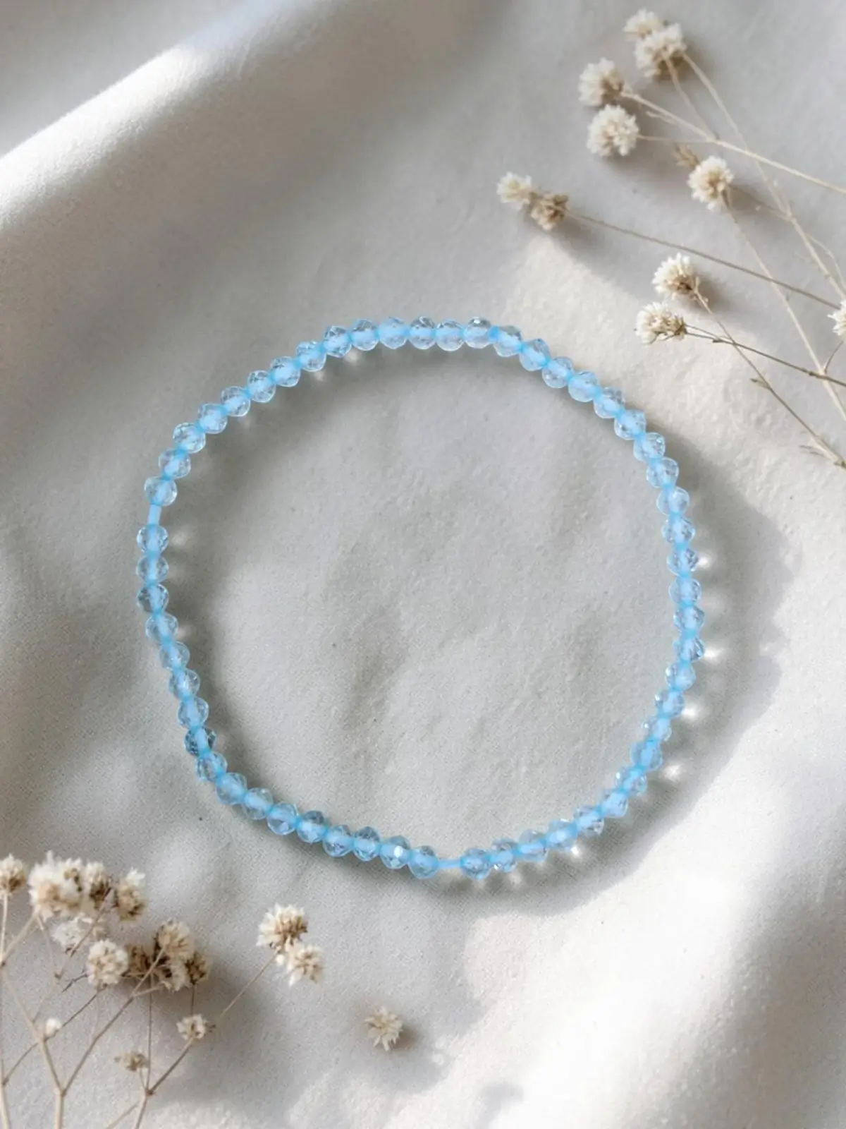 Modri topaz odpira komunikacijo, prinaša iskrenost in pomirja čustva. Je kristal resnice in miru, pomaga, da izraziš svoje srce z milino in zaupanjem. Njegov nežen sijaj deluje kot spomin, da je lepota največja, ko si pristen/na.