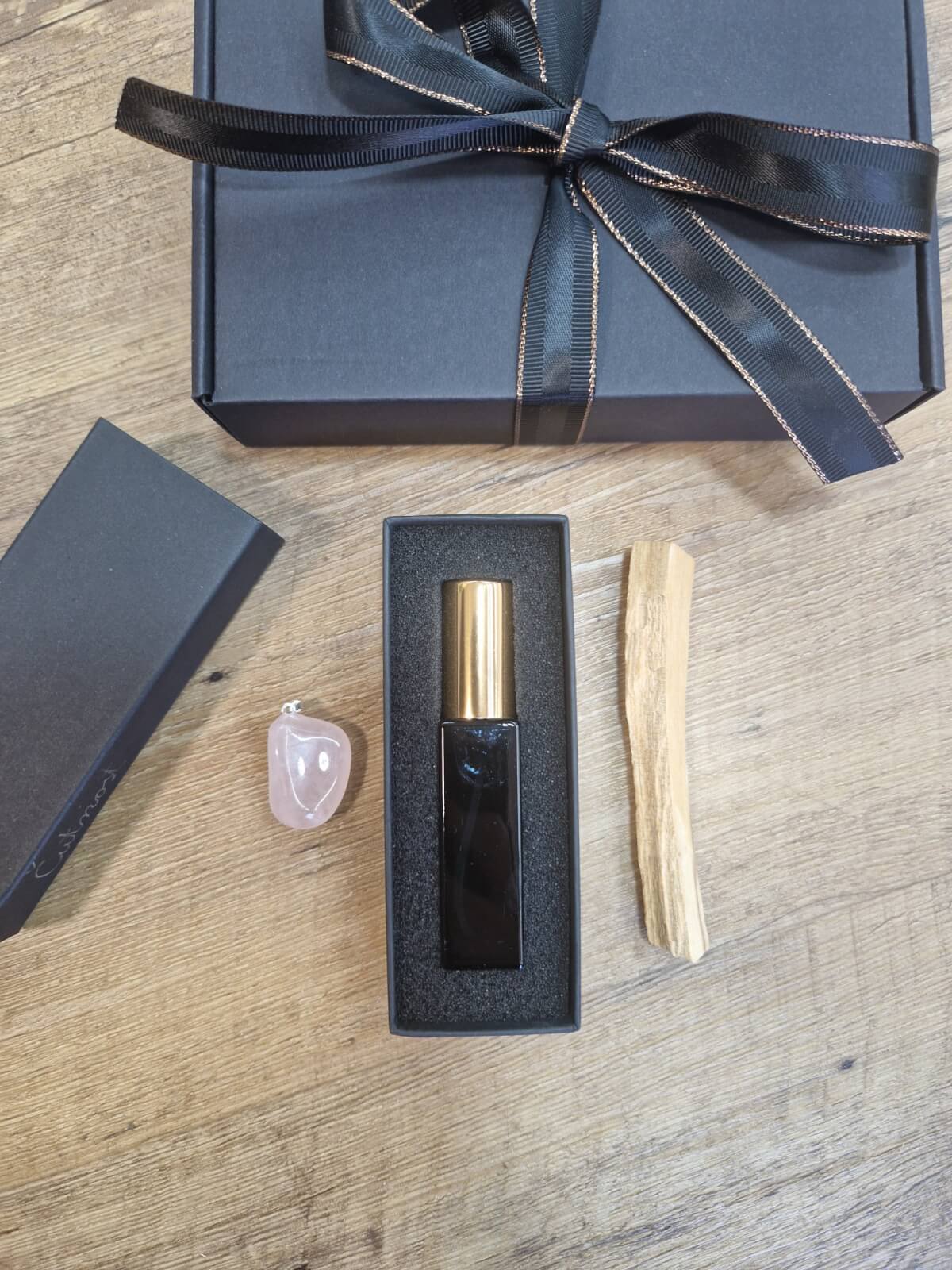Ta paket je ustvarjen kot majhen ritual, ki te spomni na tvojo naravno ženstveno moč, lepoto in čutnost. V njem se prepletajo vonj, kristali in simbolika očiščevanja, ki skupaj ustvarijo trenutek zase - trenutek, ko se ustaviš, zadihaš in začutiš sebe.
