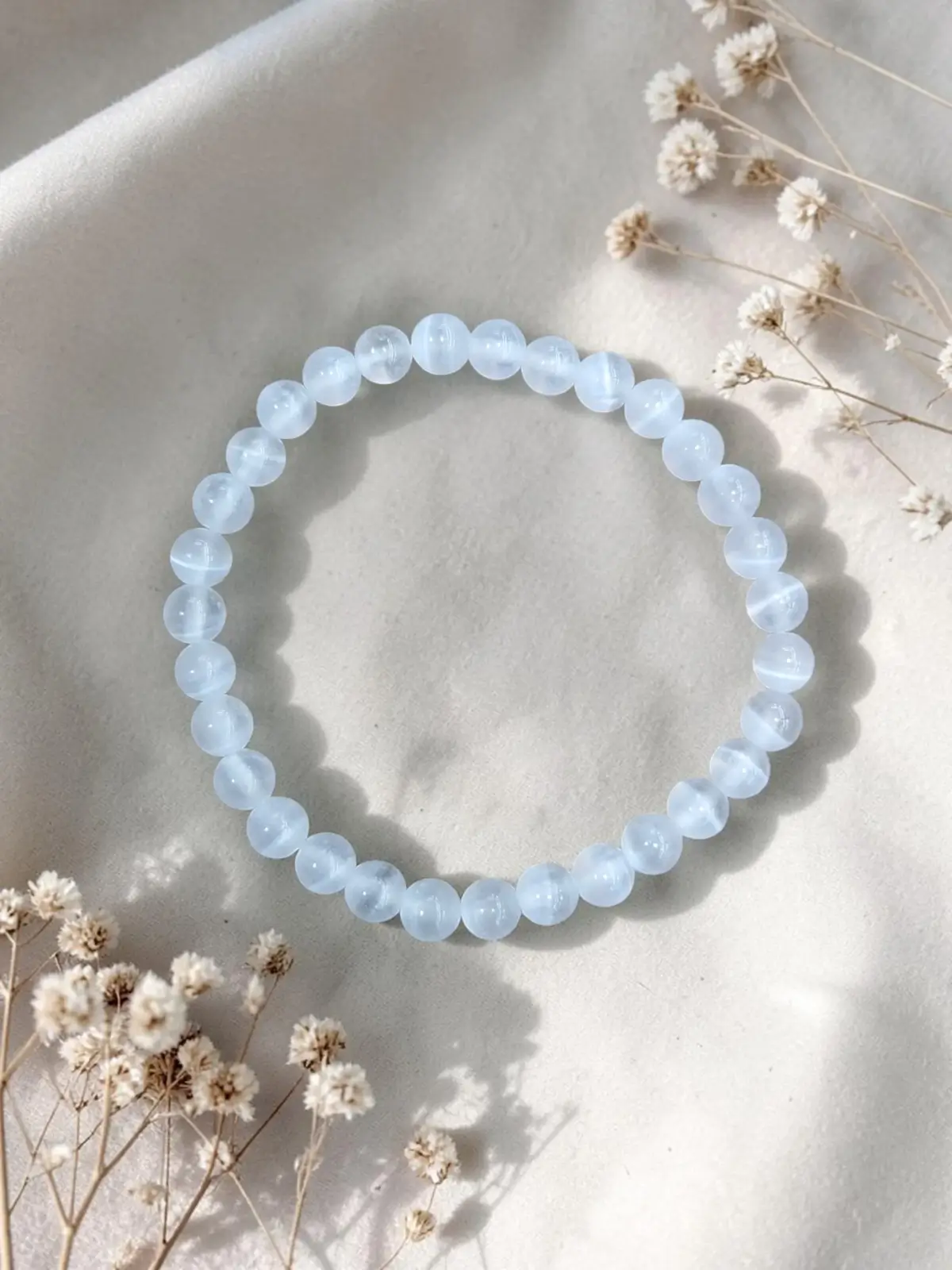 Selenit je kristal, ki v sebi nosi vibracijo čistosti, svetlobe in angelske zaščite. Ne deluje grobo, ne pretrese ampak samo nežno očisti.